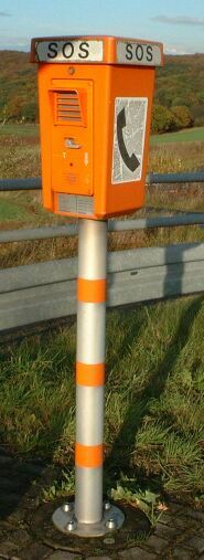 Notrufsäule, wie sie an verkehrstechnisch wichtigen Straßen anzutreffen ist. Initiator: Björn Steiger Stiftung in Winnenden |