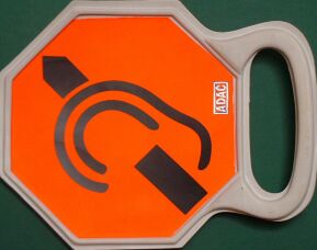 Beim ADAC ist eine Pannenkelle speziell für diese Zielgruppe erhältlich, um so andere Verkehrsteilnehmer auf ihre Notlage aufmerksam machen zu können.
