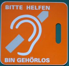 Vom Mund abzulesen ist sehr schwer, da das Formen der Buchstaben mit den Lippen bei jedem Menschen ein bisschen anders aussieht. Futter ist von Butter kaum zu unterscheiden. Etwa 30 Prozent kann man erkennen, der Rest muss man aus dem Zusammenhang erraten werden. Je größer die Erfahrung, desto weniger Inhalt geht verloren. Problembereich Notruf Verloren können sich gehörlose Menschen bei einer Autopanne vorkommen. Wenn sie zusätzlich nicht oder nur sehr undeutlich sprechen, kommen sie an den üblichen Notrufsäulen selten zurecht. Doch gehörlose Menschen können sich in einem Notfall auf jeden Fall bemerkbar machen. In dieser Situation helfen Signalkellen für den Notfall: